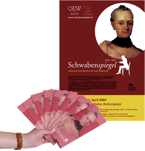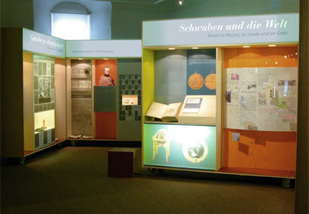 Die Kapitel dieser Wanderausstellung, die im Auftrag der Oberschwäbischen Elektrizitätswerke entstanden ist, sind als überdimensionale Buchelemente gestaltet. Jedes Buch ist individuell mit Vitrinen, Grafik, Bildern und Farben ausgestaltet. Die Kapiteltitel stehen hinterleuchtet in dem abnehmbaren Aufsatz, der gleichzeitig die Beleuchtung der Vitrinen beinhaltet.